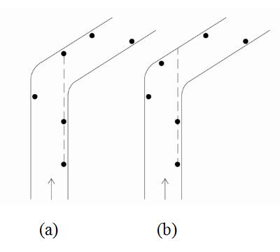 图3 转弯处道路照明路灯灯具设置 (a)不正确;(b)正确